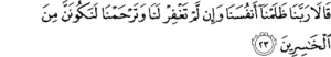 Keduanya Berdoa : “Ya Tuhan Kami, Kami telah Menganiaya Diri Kami Sendiri (oleh Sebab Perbuatan Maksiat Kami Berdua) dan Bila Engkau ndak Mengampuni Kami dan ndak Memberi Rohmat kepada Kami, Niscaya Pastilah Kami Termasuk Orang-orang yang Merugi (seperti Meruginya Iblis yang ndak Mau Bertaubat dan ndak Mau Mengakui Kesalahannya Sendiri)”.